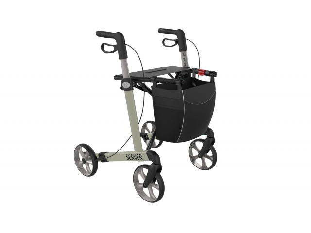 De stijlvolle Server rollator heeft een uniek driehoekig profiel en een vast gelast frame. Het is met een eigen gewicht van ruim onder de 7,5 kg een van de lichtste rollators op de markt in de categorie gebruikers tot een maximaal gewicht van 150 kg.